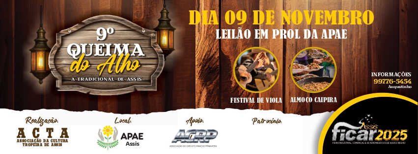 a Queima do Alho será realizado um leilão beneficente 100% em prol a APAE.